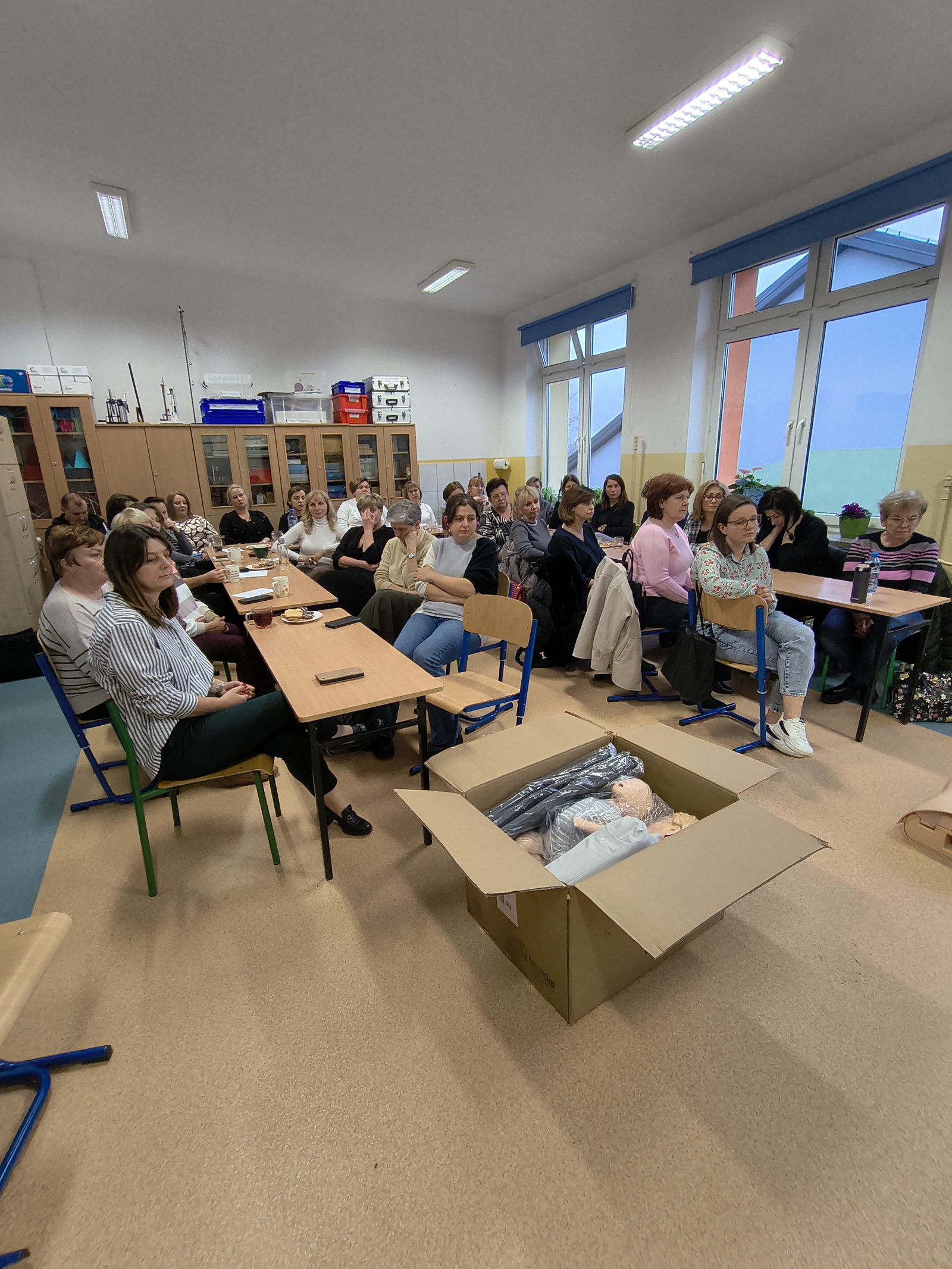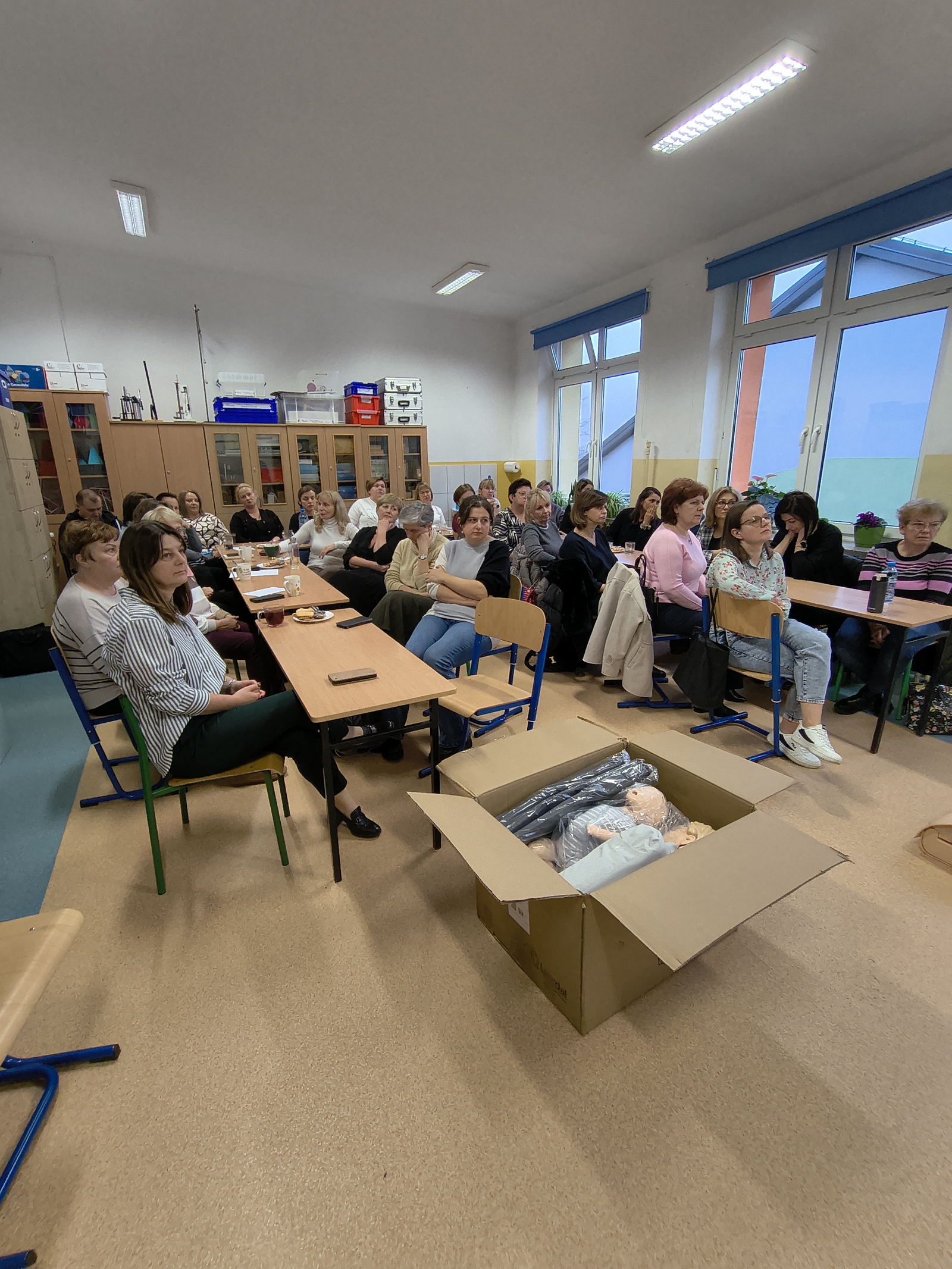 Odbyły się szkolenia pracowników placówek oświatowych, społeczeństwa gminnego: tj. radni, sołtysi, Strażacy. Łącznie przeszkolono 160 osób z zakresu Kwalifikowanej Pierwszej Pomocy BLS+AED.